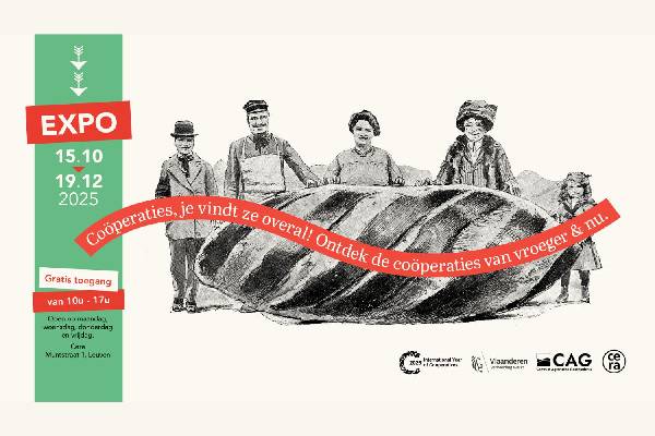 Op 15 oktober 2025 opent in het Cera-gebouw in Leuven de expo Coöperaties, je vindt ze overal!, die te bezoeken is tot en met 19 december. Cera en het Centrum Agrarische Geschiedenis (CAG) grijpen het Internationaal Jaar van de Coöperaties aan om te tonen hoe deze ondernemingsvorm doorheen de tijd telkens weer het verschil maakt. De tentoonstelling dompelt bezoekers onder in de wereld van coöperaties, met historische beelden, persoonlijke verhalen en verrassende invalshoeken die jong en oud aanspreken. Waarom dit belangrijk is? Omdat coöperaties al meer dan een eeuw een rol spelen in ons dagelijkse leven en ook vandaag een antwoord bieden op maatschappelijke uitdagingen.
