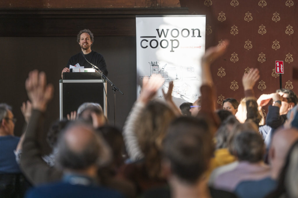 Tijdens het inhoudelijke luik gaf Lukas Vanelderen, medeoprichter en bestuurder van wooncoop, een welkomstspeech waarin hij drie duidelijke wensen voor het nieuwe jaar formuleerde: focus, heldere communicatie naar bewoners en vlotte werven. Aansluitend nam Peggy Totté van Architectuurwijzer het woord met een presentatie over de expo, waarin ze coöperatieve woonprojecten uit binnen- en buitenland toelichtte. Die internationale en Vlaamse voorbeelden vormden een dankbaar vertrekpunt voor gesprekken nadien, zowel over concrete projecten als over bredere ambities van wooncoop en haar gemeenschap.