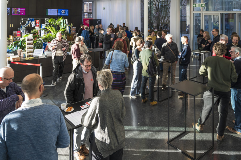 Na de presentaties bezochten de aanwezigen gezamenlijk de expo en werd het nieuwe jaar ingeluid met een nieuwjaarsdrink. Tussen de tentoonstellingsonderdelen ontstonden tal van gesprekken tussen coöperanten en geïnteresseerden, met de inhoud van de expo als gedeelde referentie. De foto’s hieronder, gemaakt door fotograaf Jeroen Willems, geven een indruk van de sfeer tijdens de namiddag.
