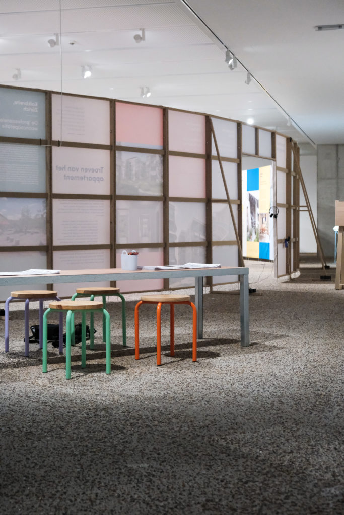 Het idee om de tentoonstelling ritme en leesbaarheid te geven met grote kleurvlakken bleef behouden, ook al kreeg het gaandeweg een eigen invulling. De gekleurde panelen organiseren de veelheid aan maquettes, foto’s en teksten. En voor bezoekers werkt het ook intuïtief: de kleuren zorgen voor oriëntatie en een gevoel van samenhang. Kerremans noemt het “een toevalstreffer die ik bewust een plaats gaf”.
